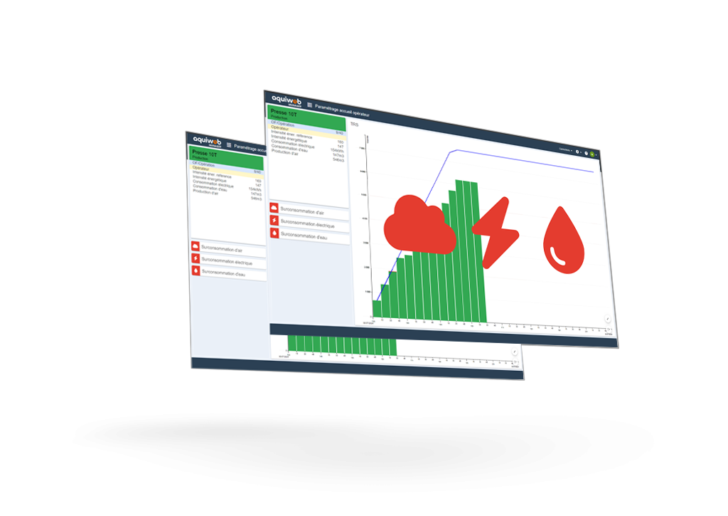 - L’acquisition de données des consommations en temps réel (eau, air, électricité…) à la machine, à l’îlot, à la zone, à l’atelier, à l’utilité